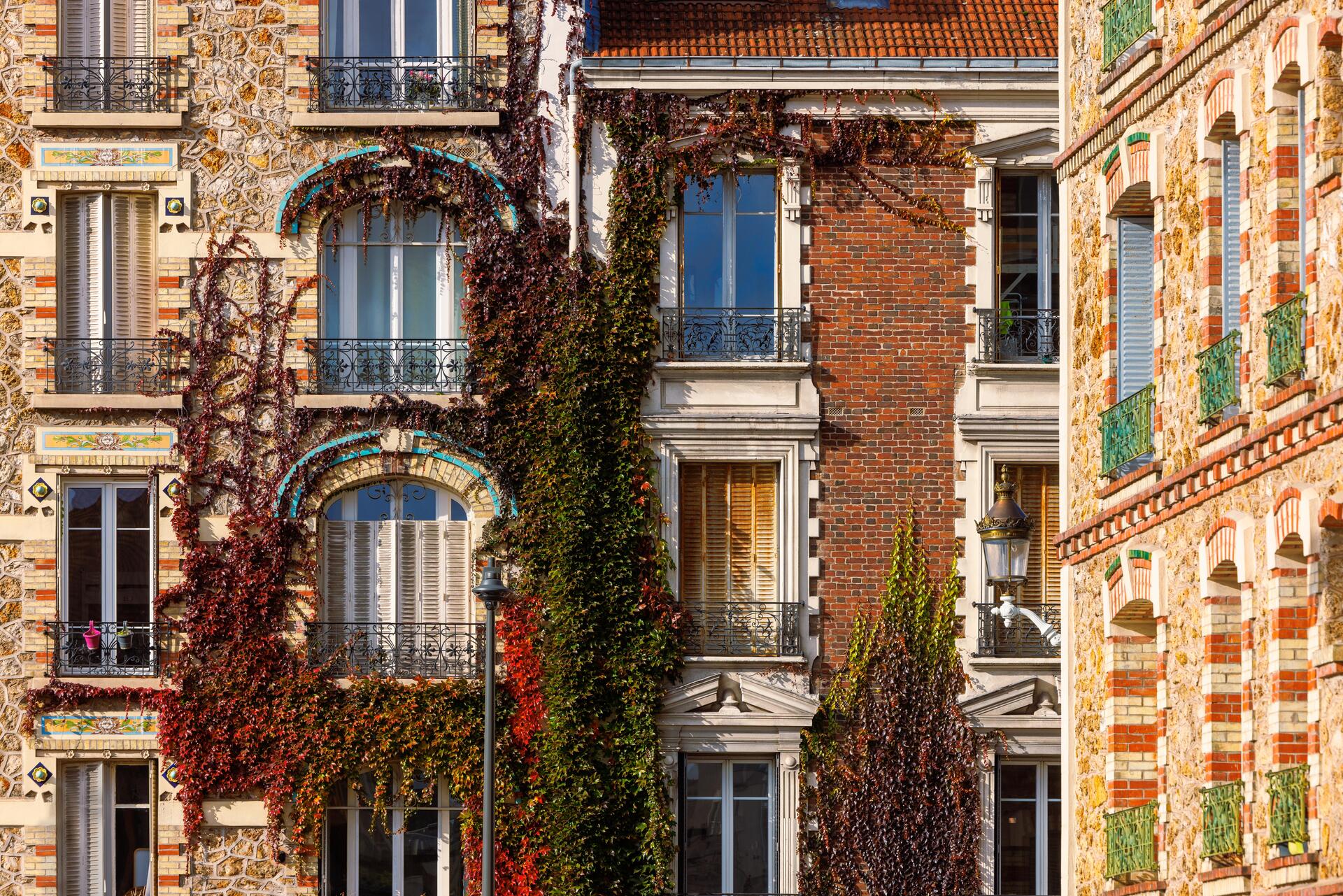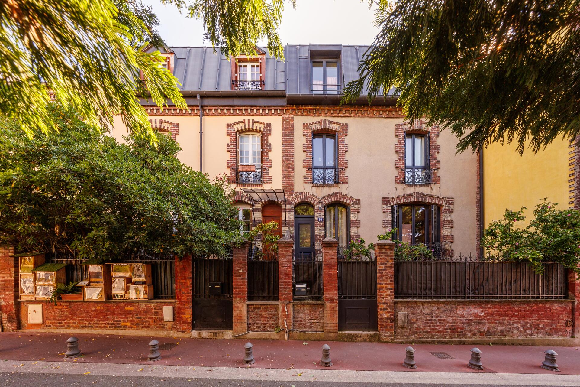 À Montrouge, la pierre meulière est un peu partout, comme en façade aussi des maisons du quartier Ferry-Buffalo ou encore de celles du « quartier des écrivains » [4]. Pierre caractéristique du bassin parisien, la meulière raconte à elle seule une histoire de la banlieue, notamment celle de l’habitat pavillonnaire. Ce dernier occupe encore toute sa place à Montrouge, comme avec les maisons mitoyennes (dites « en bande ») du début du XXe siècle rues Fénelon ou Gueudin [5], les maisons rue Louis Rolland implantées en fond de terrain, ou les pavillons rue Victor Hugo [6] installés à l’alignement des rues, tout comme sur l’avenue Verdier [7]. Bleues, jaunes, rouges, vertes, roses… Certaines maisons de ville osent même la couleur à Montrouge et participent à accroître l’attractivité de la ville. Au quotidien, la Mairie et le CAUE 92 travaillent de concert pour préserver les matériaux nobles et les styles architecturaux caractéristiques des différentes époques ayant façonné la ville.