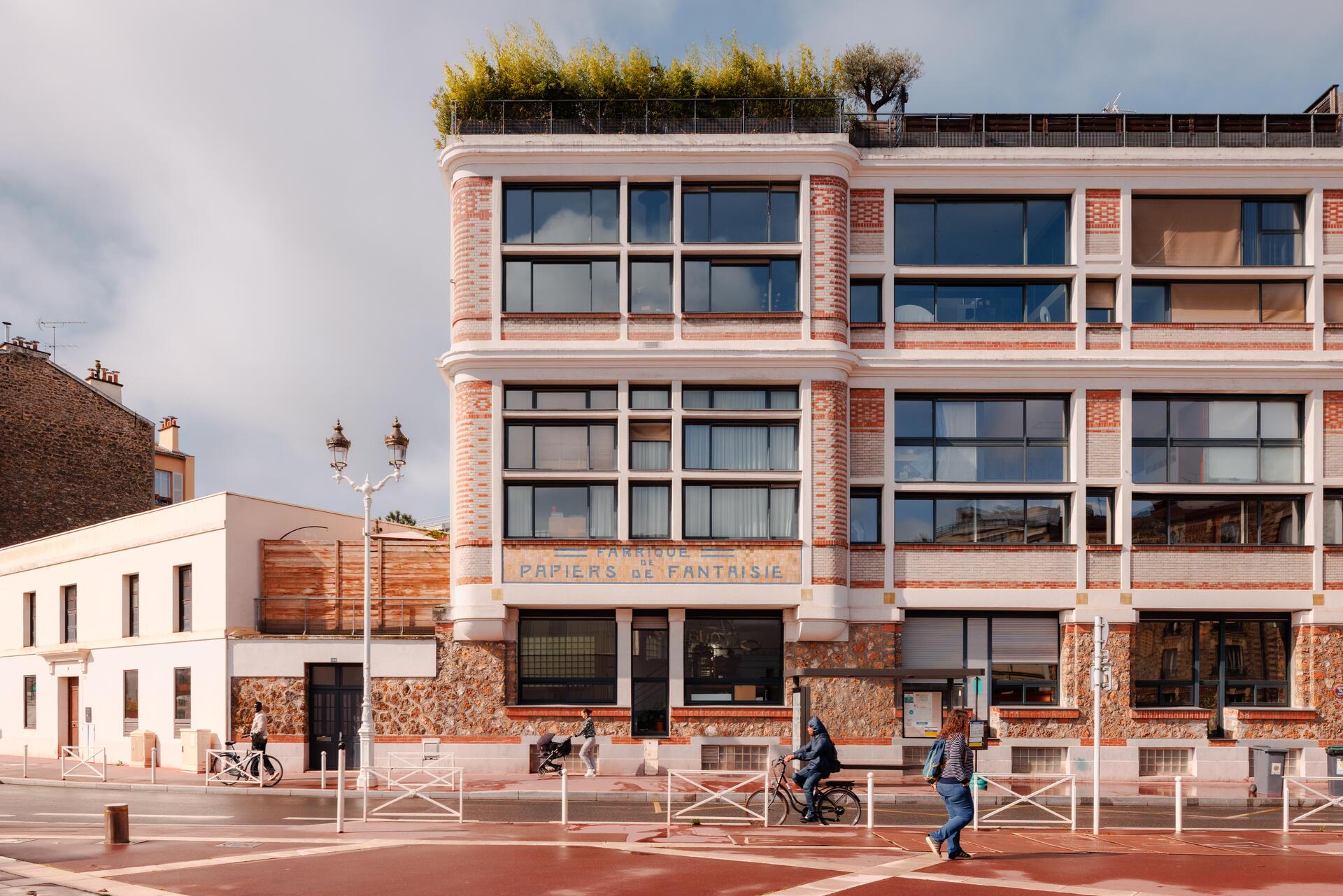 « Fabrique de papiers de fantaisie », faite de décors en céramique, a été préservée lors de la réhabilitation de l’ancienne usine en bureaux et en logements, en 2001, par l’architecte Arnaud Fougeras-Lavergnolle. Cette enseigne rappelle le passé industriel de la ville. « L'appropriation de la trame structurelle et historique de l'ancienne fabrique a permis de penser des logements singuliers sous forme de lofts en double hauteur, largement vitrés », complète l’architecte conseil. Tout proche, au 92 de l’avenue Henri Ginoux, un autre bâtiment attire le regard. Dans un style Art nouveau, cet immeuble richement ornementé [3], réalisé en 1902 par l’architecte Balmefrezol, intègre pierres meulières, briques et céramiques. « La pierre meulière domine en façade. Les persiennes métalliques, les éléments de décors en céramique et les briques vernissées et colorées soulignent l’arrondi des ouvertures et apportent charme et esthétique à ce bâtiment du début du XXe siècle », détaille-t-elle.
