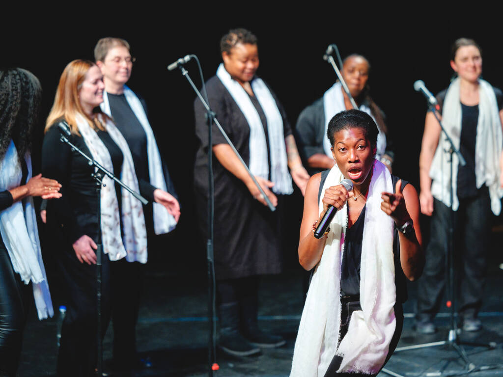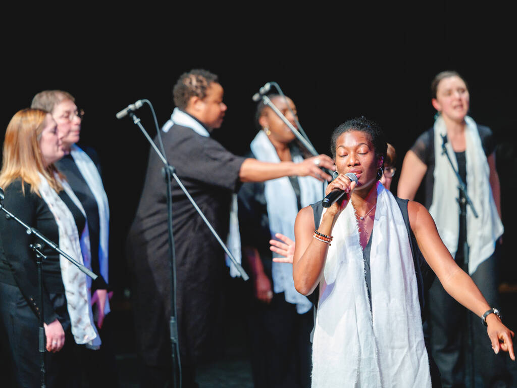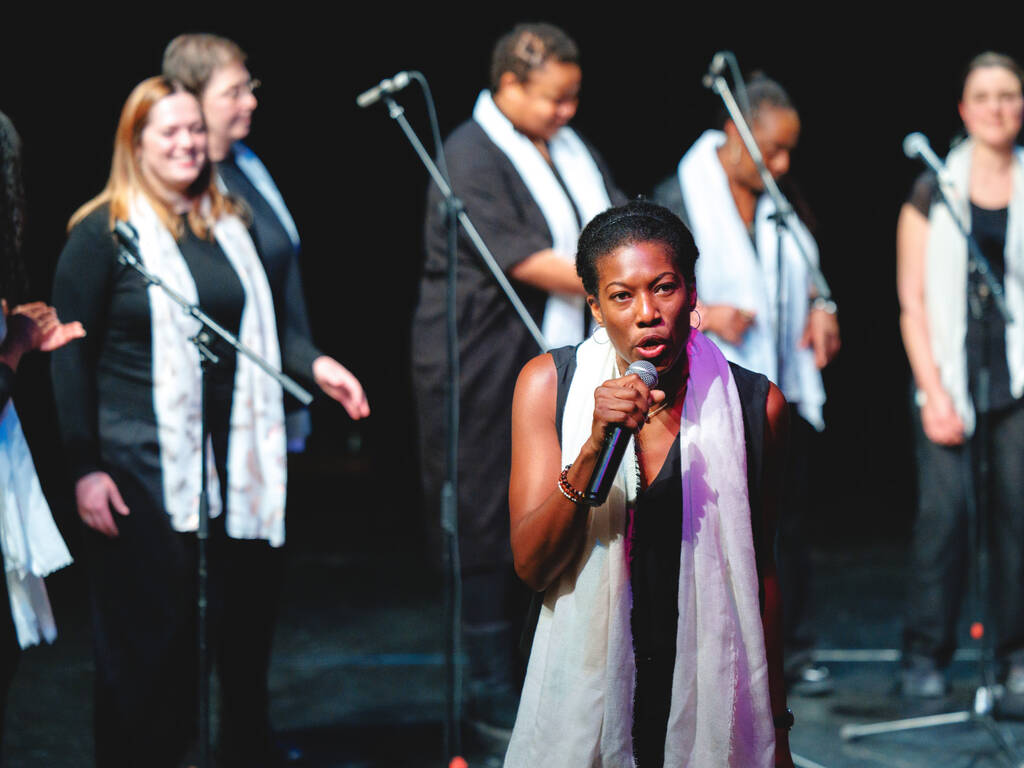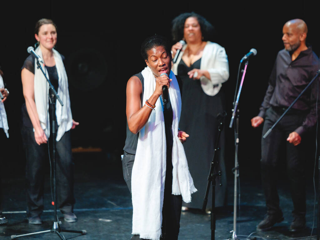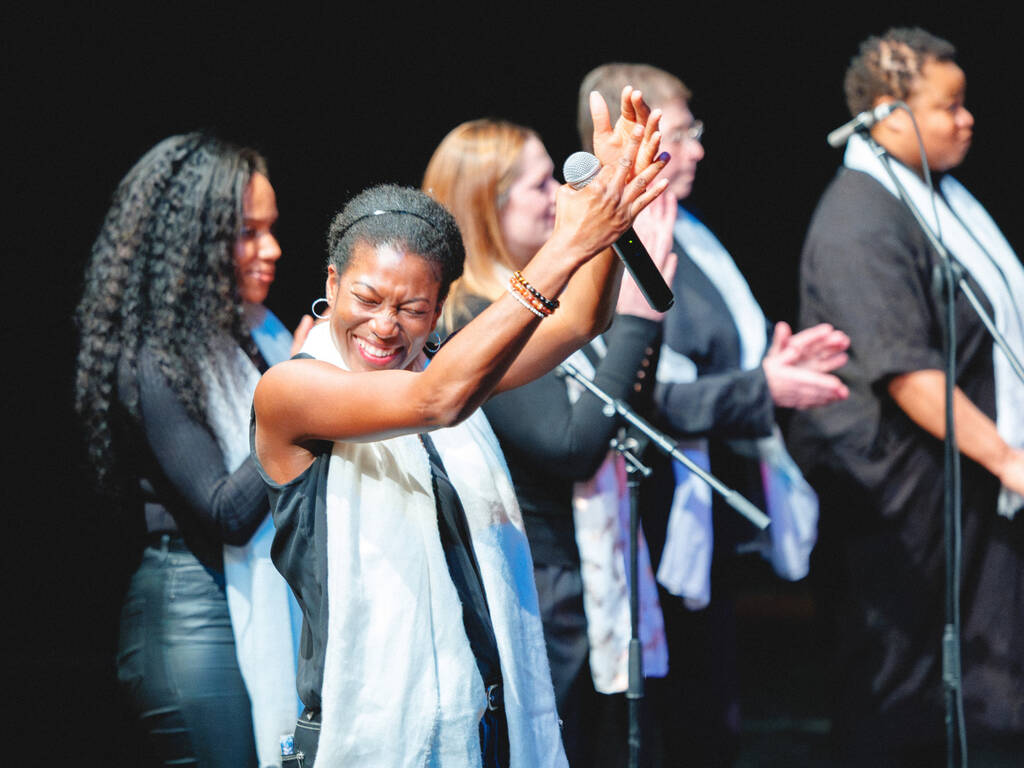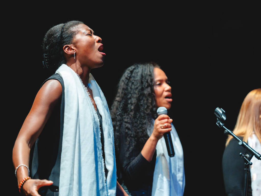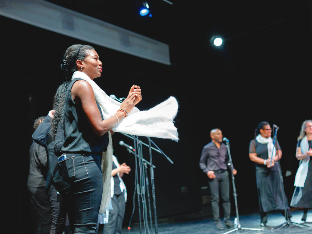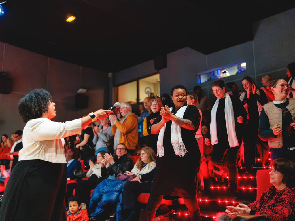 Des voix puissantes et des harmonies vibrantes… Voilà ce qu’ont pu entendre les spectateurs du Ciné Montrouge le 5 décembre dernier, à l’occasion d’un concert de gospel donné par les élèves adultes du cours de chant de l’Espace Colucci. Guidés par leur professeure, Linda Louis-Abraham, les élèves ont interprété, sourires aux lèvres, plusieurs standards du gospel parmi lesquels Song of Freedom, Amazing Grace ou encore Joyful, joyful.