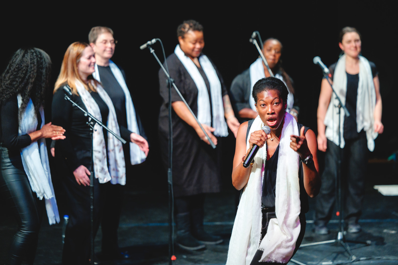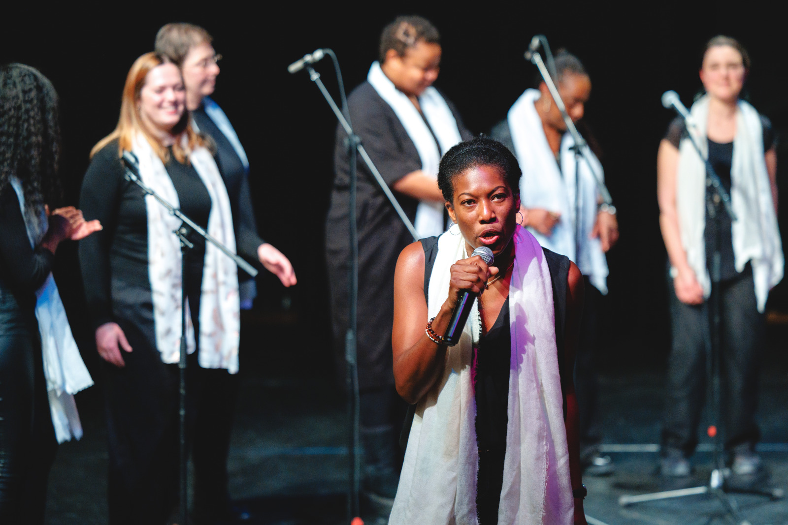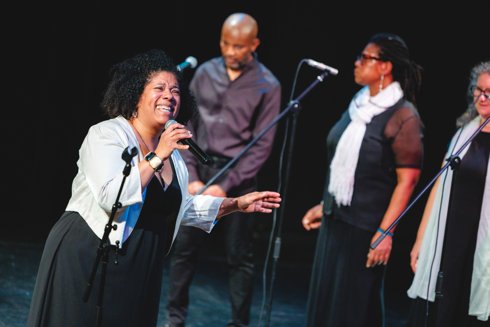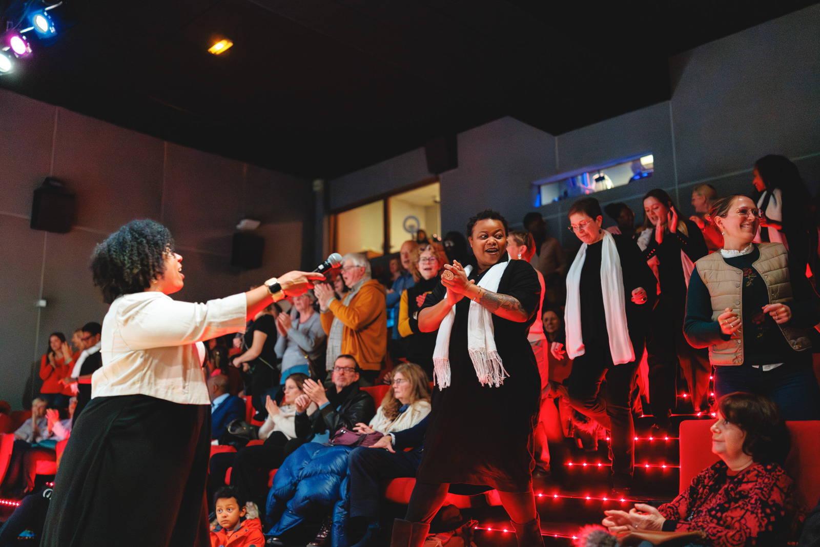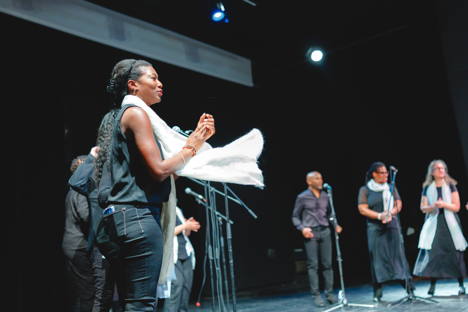 Des voix puissantes et des harmonies vibrantes… Voilà ce qu’ont pu entendre les spectateurs du Ciné Montrouge le 5 décembre dernier, à l’occasion d’un concert de gospel donné par les élèves adultes du cours de chant de l’Espace Colucci. Guidés par leur professeure, Linda Louis-Abraham, les élèves ont interprété, sourires aux lèvres, plusieurs standards du gospel parmi lesquels Song of Freedom, Amazing Grace ou encore Joyful, joyful.