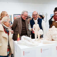 Bijoux, articles de maroquinerie, céramiques… On pouvait dénicher de belles idées de cadeaux à l’Hôtel de Ville les 13 et 14 décembre derniers, à l’occasion du festival Art des deux mains qui met en lumière les créations des artisans montrougiens. Dans le même temps, du 13 au 20 décembre au Beffroi, 319 artistes montrougiens ont exposé leurs œuvres sur le thème du « Mythe(s) » dans le cadre d’une nouvelle édition d’Art en fête. Et cette année, l’invité d’honneur était le sculpteur montrougien Guillaume Werle !