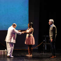 Le 14 décembre dernier, sur la scène du Beffroi, petits et grands n’avaient d’yeux que pour lui… Pompon, l’ours blanc du musée d’Orsay bien sûr ! Et c’est en sa compagnie que le public a embarqué pour un périple à la fois poétique et écologique, à travers les galeries imaginées du musée d’Orsay. Une aventure onirique pleine de surprises sonores et visuelles !