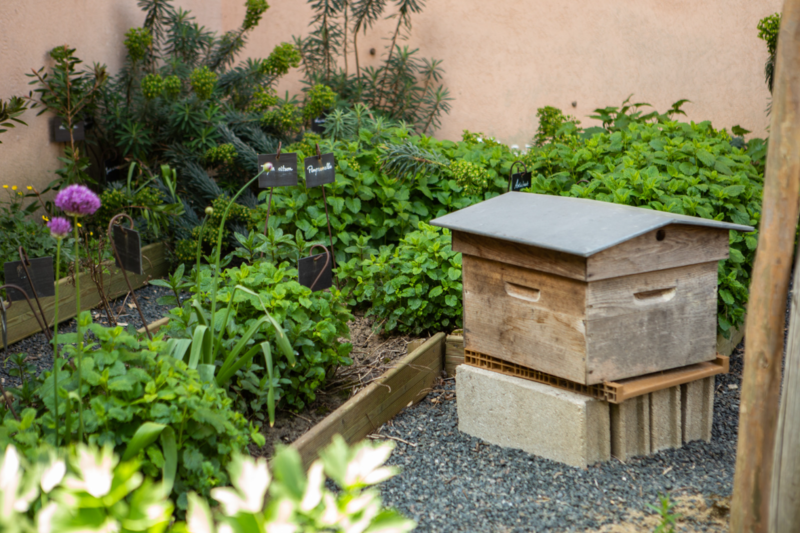 Côté cour : En 2023, ce qui était auparavant un "jardin des simples", fermé aux habitants s'est métamorphosé. En effet, c'est ce que les habitants ont souhaité : un jardin plus végétal et calme, ouvert la journée.